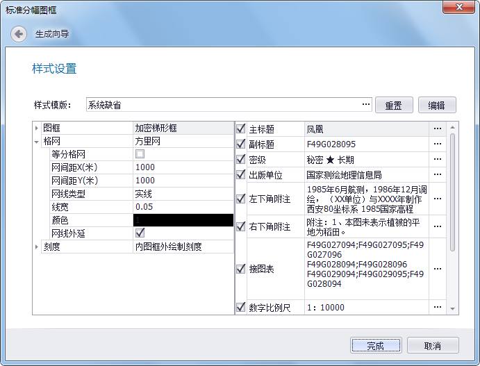 2. 参数设置完成后,点击"下一步",生成如下所示“样式设置”对话框,可对图框样式进行设计;