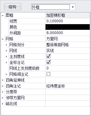 设置图框结构后,可在“元素参数列表”显示如下(用户可点击左边的三角形符号展开各参数):