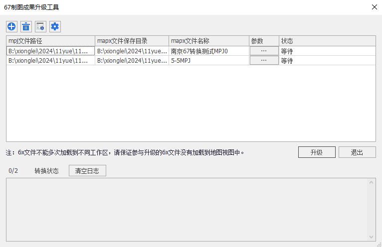 - 【添加mpj文档】:添加待进行转换的MapGIS67地图文档(*.mpj);