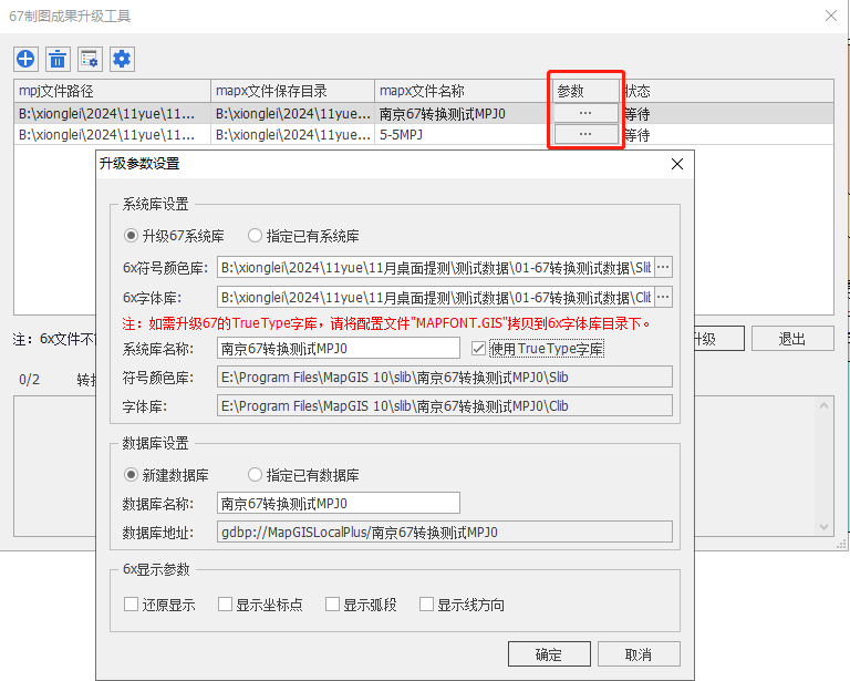 如果要升级MapGIS67的TrueType字体库,需要将MapGIS67配置文件MAPFONT.GIS(\mapgis67\program)拷贝到要转换的6x字体库下。