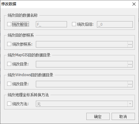 【统改目的数据名称】:修改目的数据名,在原数据名称前或后添加后缀。目的数据名称最好进行修改,以免结果保存路径同源数据一样时将源数据覆盖。