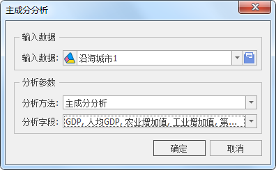 1. 在分析选项卡中,点击“统计分析”按钮,选择 “主成分分析”命令,弹出主成分分析对话框,以沿海城市经济数据主成分分析为例,如下图所示。