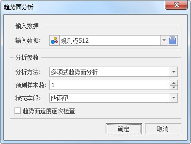 1. 在分析选项卡中,点击“统计分析”按钮,选择 “趋势面分析”命令,弹出趋势面分析对话框,如下图所示。