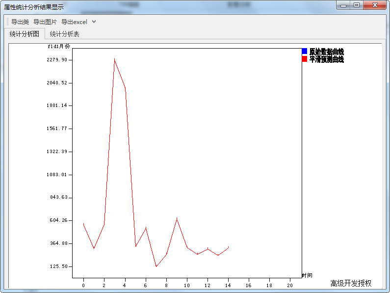 3. 点击"确定"按钮,执行时间序列分析后显示统计分析图,如下图所示。分析成果支持导出类要素、导出图片和导出表格的方式。