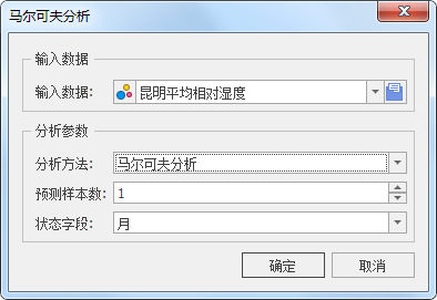 1. 在分析选项卡中,点击“统计分析”按钮,选择 “马尔可夫分析”命令,弹出马尔可夫分析对话框,如下图所示。