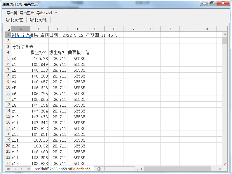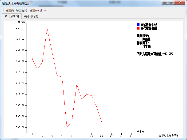 3. 点击"确定"按钮,执行趋势面分析后显示统计分析图,如下图所示。分析成果支持导出类要素、导出图片和导出表格的方式。