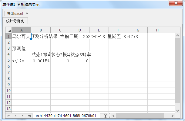 3. 点击"确定"按钮,执行马尔可夫分析后显示统计分析表,如下图所示。分析成果支持导出表格的方式。