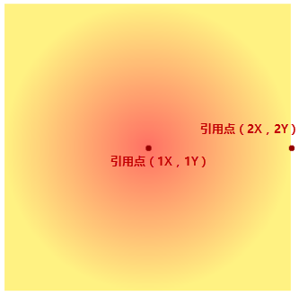 - 放射渐变:根据引用点1X/1Y确定圆心,再用颜色渐变条圆形放射填充显示区;