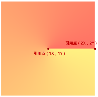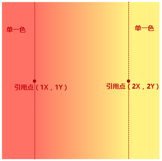 - 最接近停止色:引用点1X/1Y和引用点2X/2Y间采用渐变颜色条填充,其他区域采用单一色填充。以线性填充为例,效果如下: