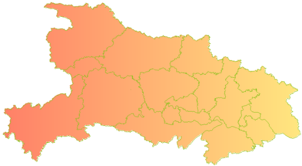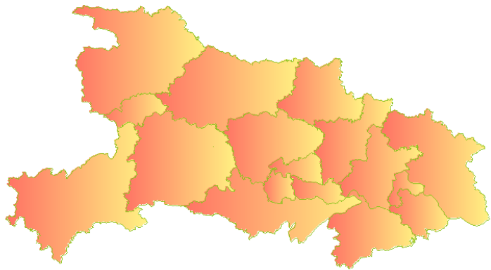 - 要素模式:渐变填充作用于区图层中每一个区图元中;