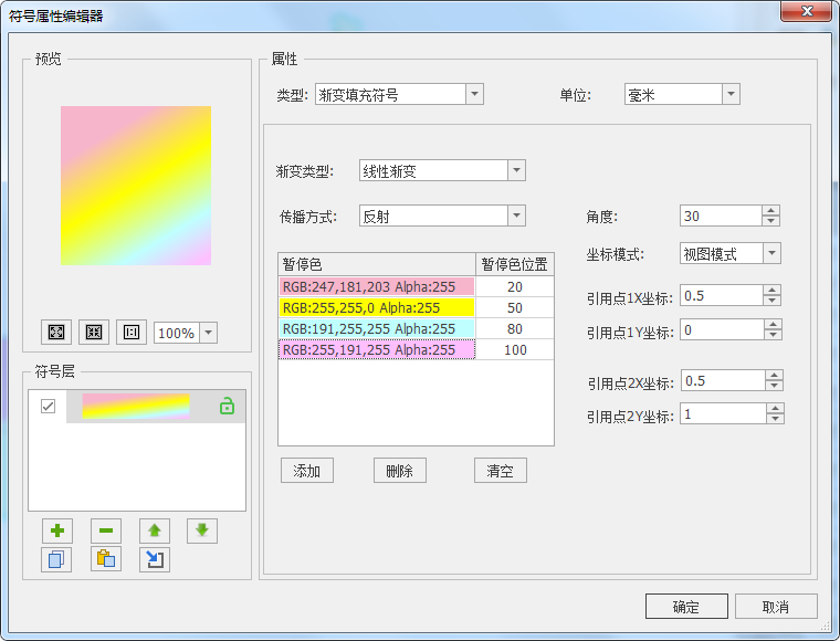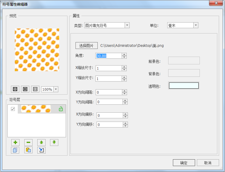 2. 配置填充符号样式和参数配置,具体参数说明如下: