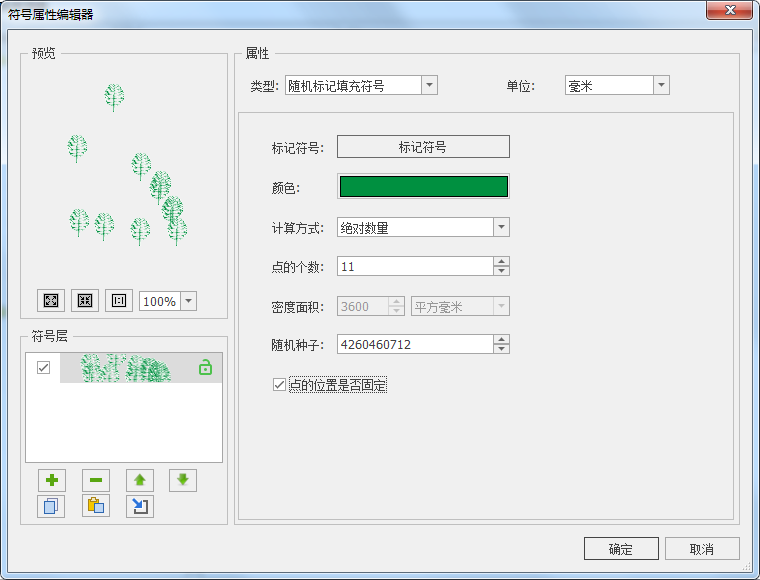 - 绝对数量:预览框中符号的个数固定,用户仅需设置“点的个数”。