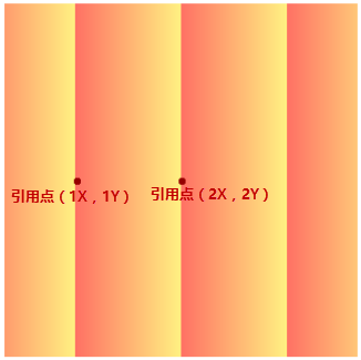 - 重复渐变:引用点1X/1Y和引用点2X/2Y间采用渐变颜色条填充,其他区域采用周期性重复渐变填充。以线性填充为例,效果如下: