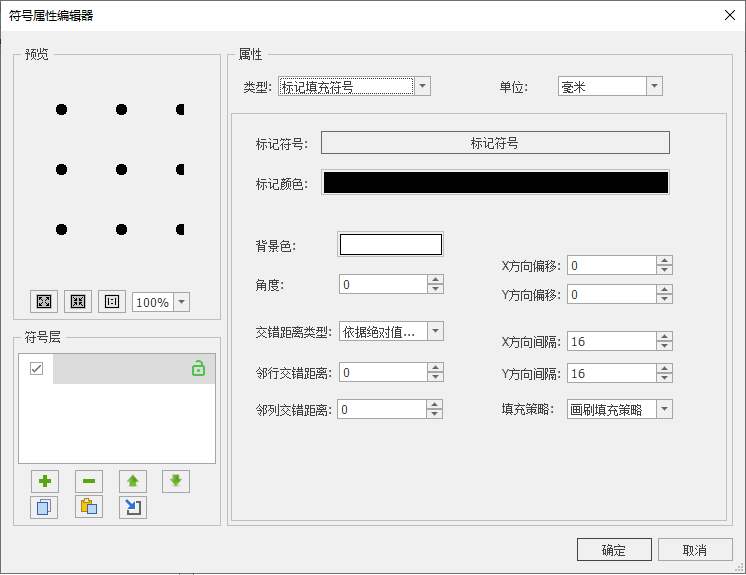 - X方向偏移:设置填充配置点符号X方向偏移值。