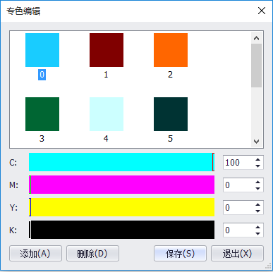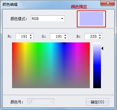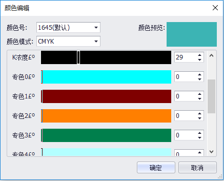 - 【编辑】:编辑选中的颜色,也可双击某颜色打开颜色编辑框,用户在编辑对话框中进行编辑后,点击"确定"保存对该编号颜色的修改。