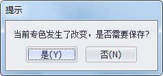 【退出】:若用户修改了某专色但没有点击“保存”按钮进行保存,则点击"退出"按钮时,系统弹出下图所示对话框,提示用户是否需要对之前的修改保存,点击“是”则保存修改并退出专色编辑;点击“否”则不保存直接退出。