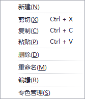 在“系统库管理”对话框左侧窗口,选择某一系统库下“颜色库”,数据视窗中将显示颜色库中所有颜色符号,右键选择符号(或右键空白处),弹出下图所示菜单: