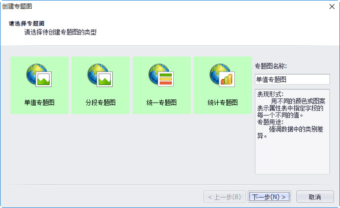点、线图层专题图类型选择向导: