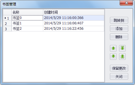 点击“书签”菜单,选择“书签管理”,弹出下图所示对话框。