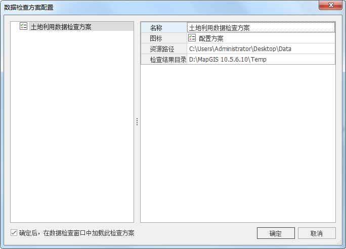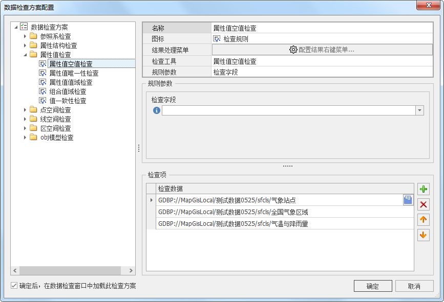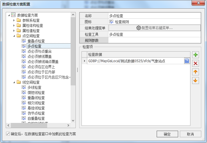 6. 点击"确定"按钮,保存检查方案,且在数据检查窗口中显示配置的图层信息,如下图所示: