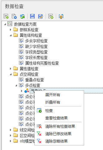 数据检查功能提供了两种执行方式,一种是检查工具条,一种是右键菜单。