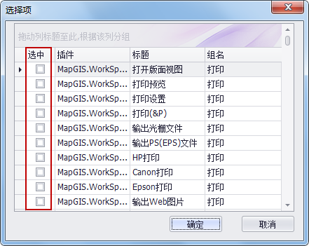 【选择项】:选择功能系统弹出下图所示对话框,用户可通过勾选下图红色框选列,将对应的命令项添加到某组下;