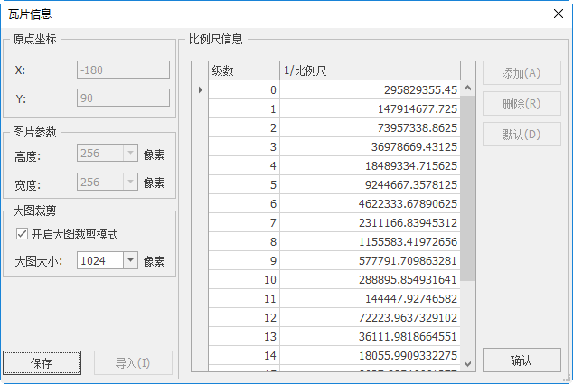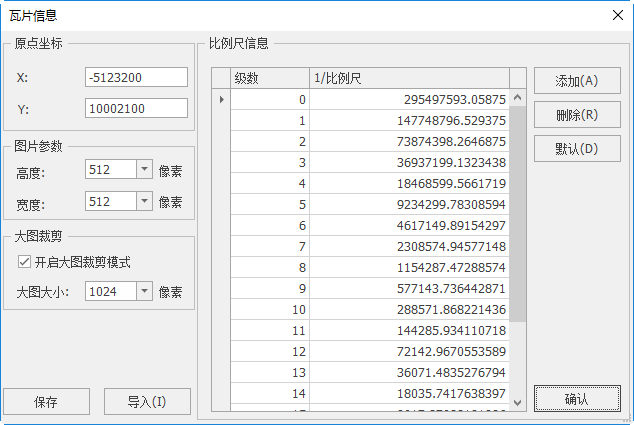 比例尺信息:设置裁剪级别与比例尺关系。