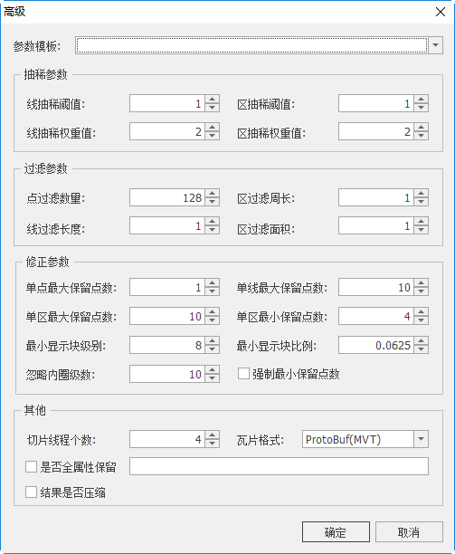 - 【结果是否压缩】:勾选时,可压缩结果矢量瓦片;
