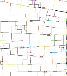除了上述基本网络元素之外,由于分析任务的不同,网络还可以由若干附属元素,包括:在路径分析中用来表示途经地点中可以进行资源装卸的站点;在资源分配中用来表示资源发散地点的中心;以及在上述两种分析中都用到的,对资源传输或通讯联络起阻断作用的障碍。上述设施都依附于网络结点,换言之,中心、站点和障碍都被看作是特殊结点,在网络分析中可以指定某个结点为中心或站点或障碍并输入相应的数据。