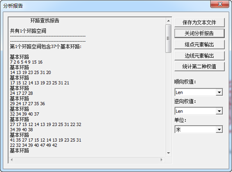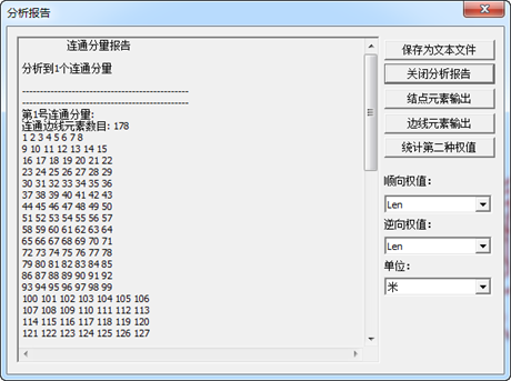 该功能是将边线的信息、结点的信息、权值信息、需求信息罗列出来。它是配合“点选结点元素”、“点选边线元素”、“点选转角”来使用。