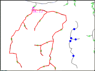 点击“点上网标(或障碍)”按钮,在图中点选结点元素,即可以在结点上添加网标(或障碍)。将某结点设置为网路障碍点后,表示在网络分析中,经由此点不能到达其他任何结点。