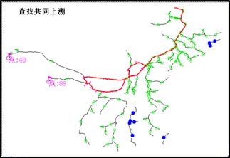 4. 选择追踪分析方式,如上溯追踪,下溯追踪,查找共同上溯,查找共同下溯,查找顺流路径,查找逆流路径等.