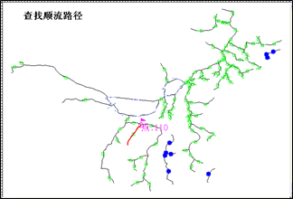 网络编辑与分析提供了多种网络分析方式,如路径分析、查找连通元素、查找非连通元素、查找环路、上溯追踪,下溯追踪,查找共同上溯,查找共同下溯,查找顺流路径,查找逆流路径等。
