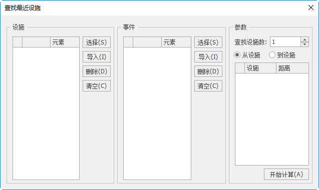3. 点击"导入",导入点简单要素类;点击"选择",可在地图视图中交互点选设施和事件点。