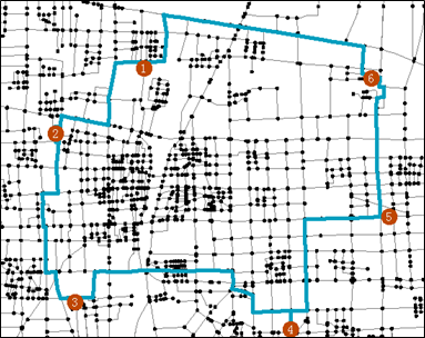网标:一个网标是网络中的一个位置。程序用网标表示大量的现实世界的对象,如最短路径的终点,路径搜索的起点,阀门的位置,服务对象的位置等等。网标不是逻辑网络的一部分。它们可以用来描述网络中的任何位置。