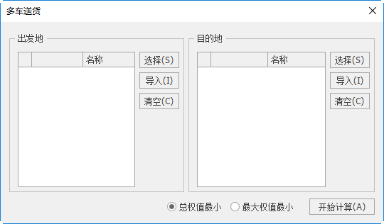 选择"导入",加载当前网络图层的所有结点,作为中心和站点的待选项。