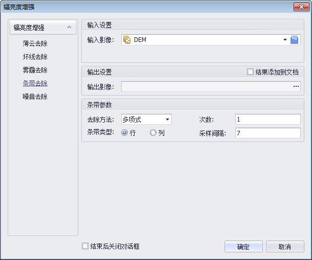 4. 设置条带去除后的输出结果路径。点击"确定",执行去除操作。