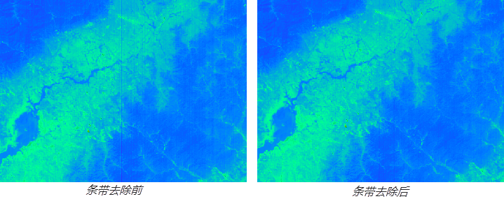 若在条带去除参数设置时,勾选“结束后关闭对话框”,完成操作后,“图像拉伸”对话框会自动关闭;若勾选“结果添加到文档”,处理结果会自动添加到当前地图文档中。
