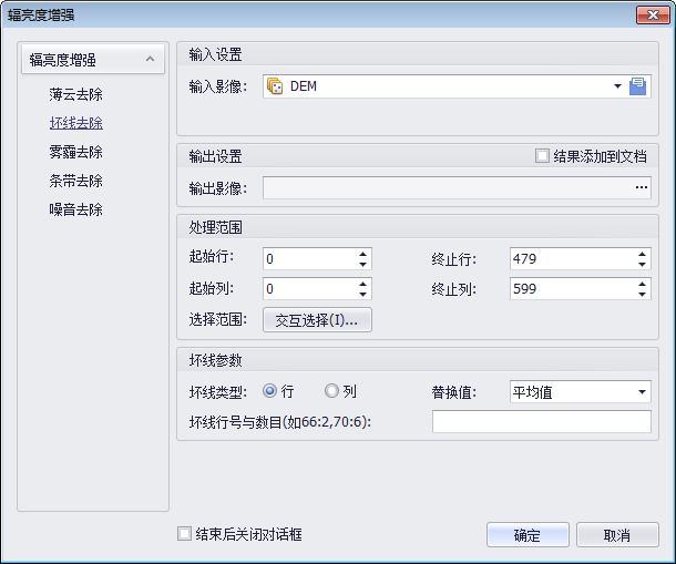 1. 在“辐亮度增强”对话框中选择“坏线去除”页面,页面视图如下: