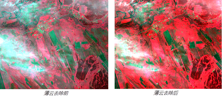 使用默认的薄云参数,去除影像上的薄云,去除结果如下:
