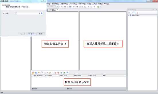 校正影像显示窗口:控制点全图浏览窗口;