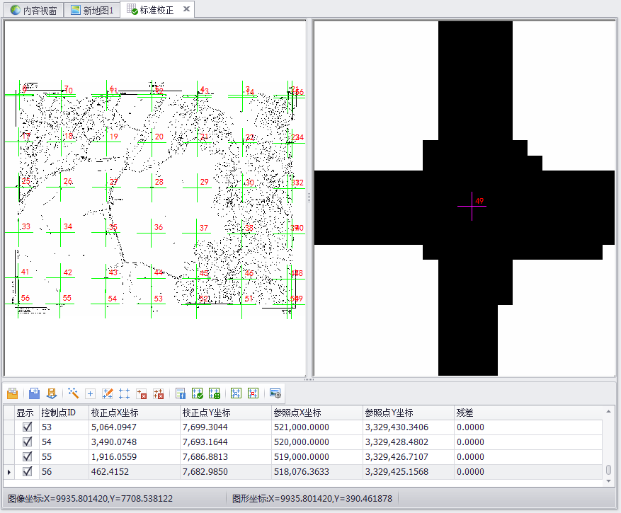 修改完所有的控制点后,用户可以选择“计算残差”功能,若结果满足控制点的校正精度,可点击工具条上“校正”