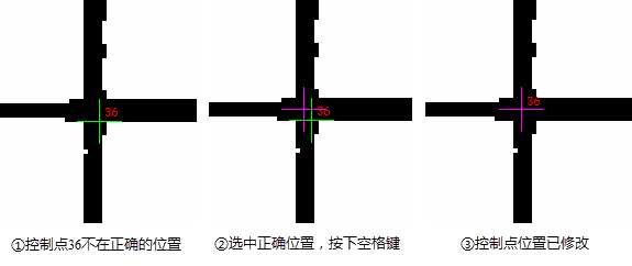- 在左窗口上点击需要修改的控制点,或者在下方的控制点列表中双击需要修改的控制点,右窗口中将会放大显示该点;