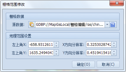 在栅格范围修改中,用户可以对栅格数据进行坐标平移和分辨率的改变。