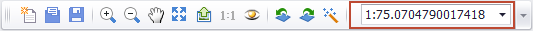 3. 通过“常用工具条”的“当前窗口的比例尺”设置框(如下图),设置当前数据视图的显示比例尺,显示比例尺是显示器上1毫米代表的实地距离。