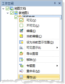 1. 在工作空间中右键相应的栅格图层,在其右键菜单中选择“属性”项,弹出“数据属性页”对话框;