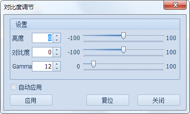 2. 在“栅格编辑工具条”上,单击“对比度”按钮,弹出“对比度调节”对话框(如下图)。用户可以在该窗口上调整图像的亮度、对比度和Gamma值;