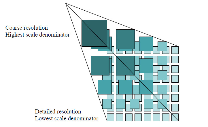 WMTS提供了一种采用预定义图块方法发布数字地图服务的标准化解决方案,弥补了WMS不能提供分块地图的不足。WMTS牺牲了提供定制地图的灵活性,代之以通过提供静态数据(基础地图)来增强伸缩性,这些静态数据的范围框和比例尺被限定在各个图块内。这些固定的图块集使得对WMTS服务的实现可以使用一个仅简单返回已有文件的Web服务器即可,同时使得可以利用一些标准的诸如分布式缓存的网络机制实现伸缩性。