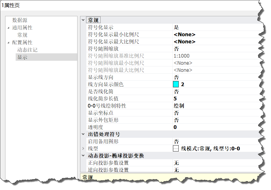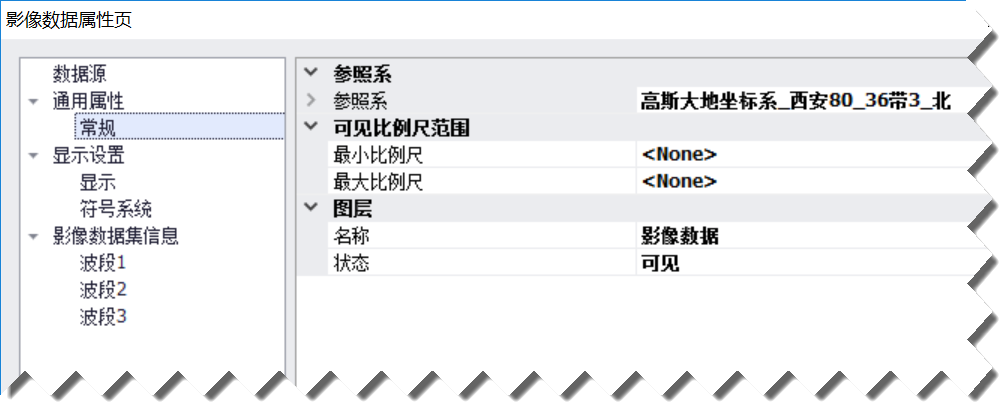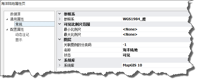 (1)“常规”选项卡:可以修改图层空间参照系、可见比例尺范围、名称、图层状态等。