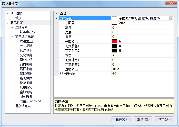 【方向子图】:在拓扑建网时显示拓扑方向,类似于线方向。